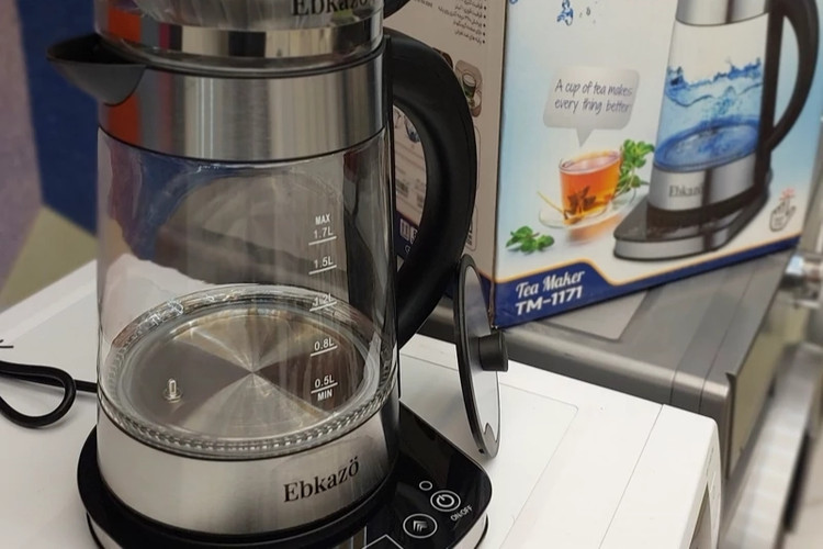 چای ساز روهمی مدل ebkazo 2000 وات کتری و قوری شیشه ای صافی استنلس استیل _دارای سیستم قطع کن اتمام آب _ظرفیت کتری 1/7 لیترظرفیت قوری 1 لیتر _صفحه نمایش دیجیتال لمسی _چرخش 360 درجه کتری روی پایه _پایه های ضد لغز